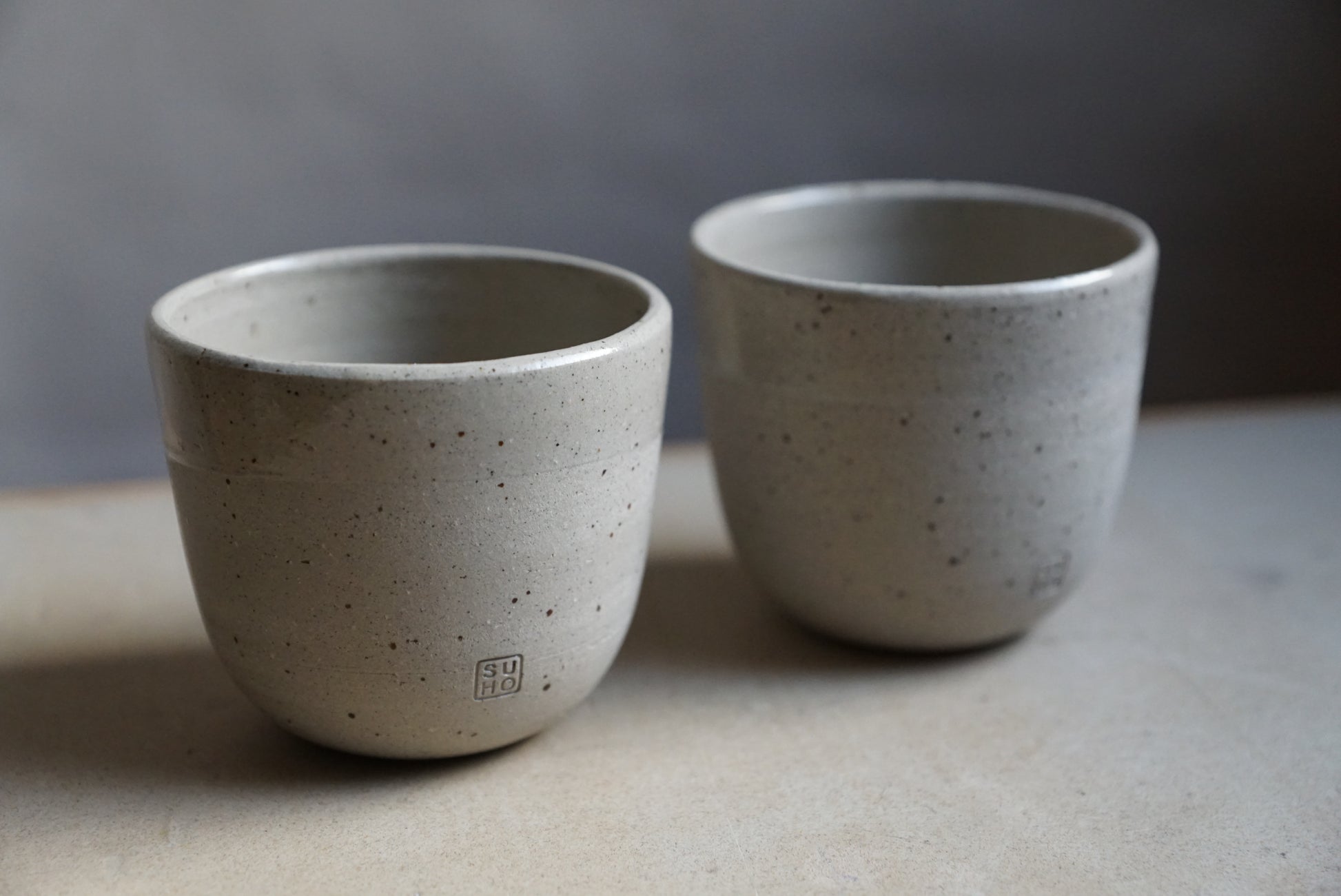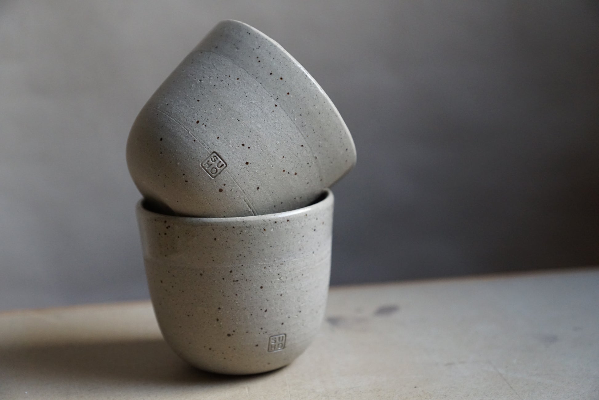 2er Sets aus schamottiertem, recycleten Steinzeugton, von Hand gedreht, transparent glasiert, gebrannt bei 1230°C.